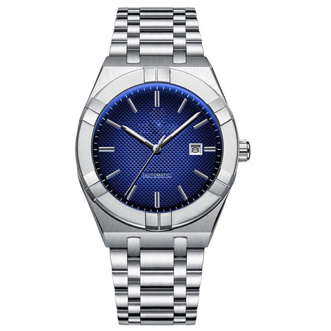 Benutzer definierte Marke dünnes Design Automatik uhren Japan Uhrwerk Auto Datum Ice Blue Männer mechanische Uhren
